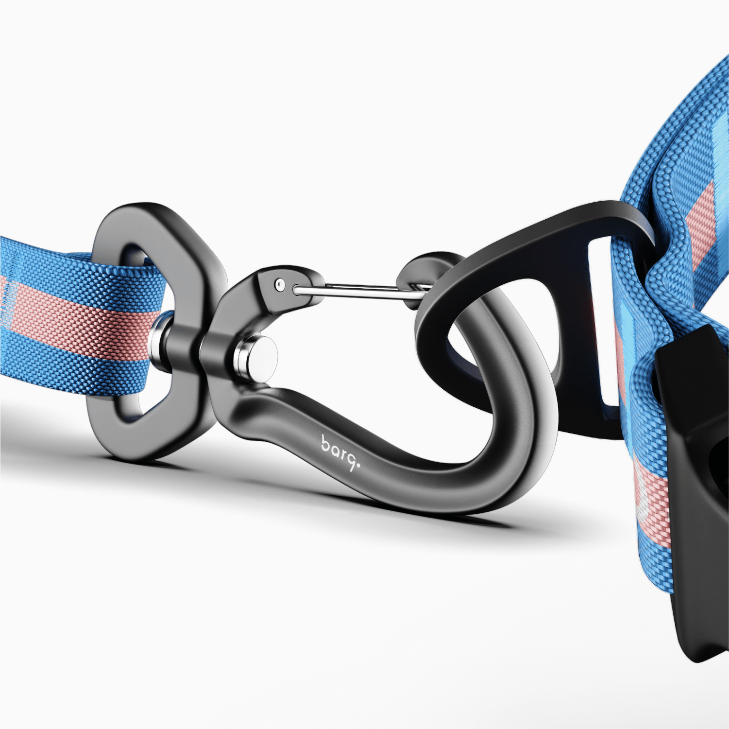 Облегченный металлический карабин удобно пристегивается одной рукой и надежно закрепляется на кольце поводка или шлейки